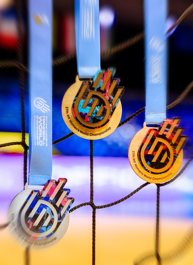 As the 2025 IHF Women's World Championship reaches its thrilling conclusion on Sunday, the medals for the teams finishing on the podium have been unveiled. These unique awards are intertwined with the values of the competition and with the "Hands Up for More" motto and have been crafted from contributions by clubs across the Netherlands to create a lasting legacy from this historic co-hosted event.